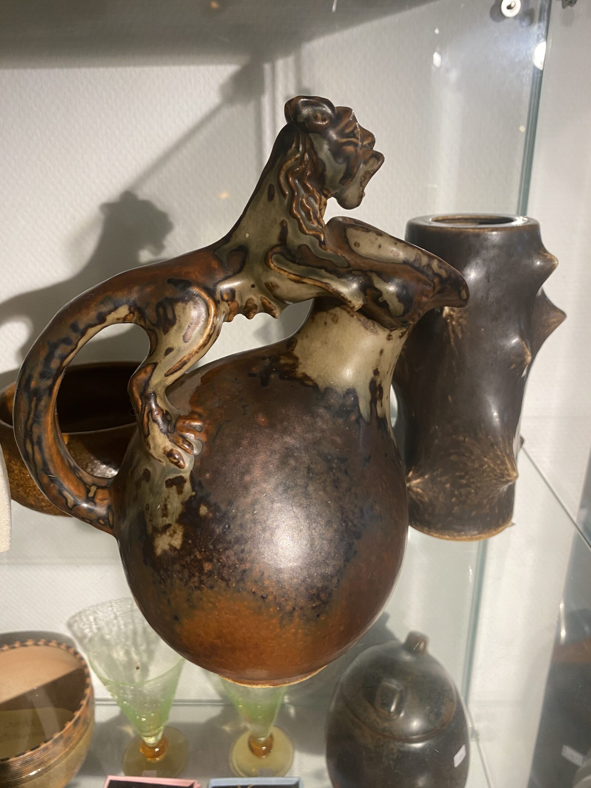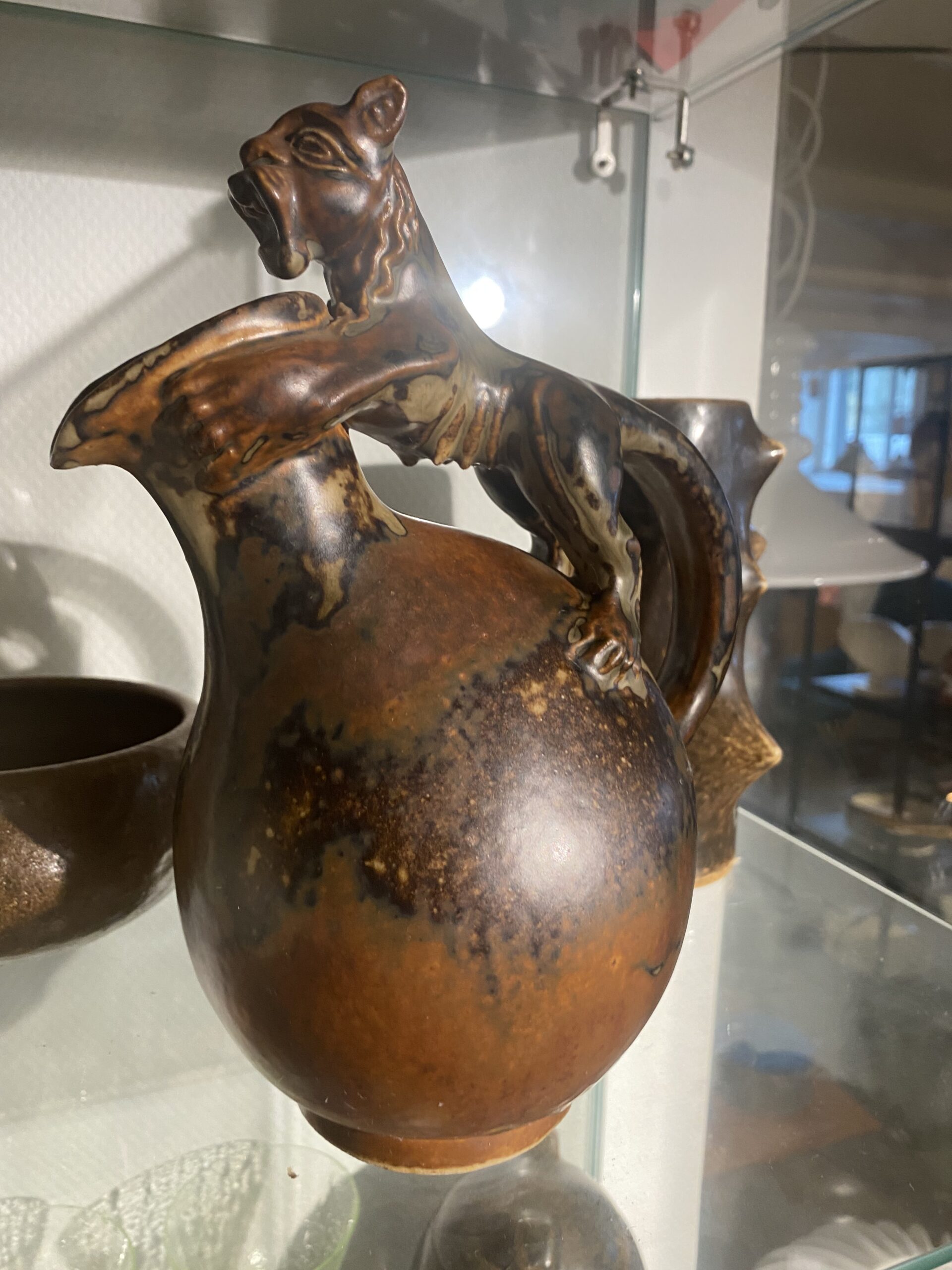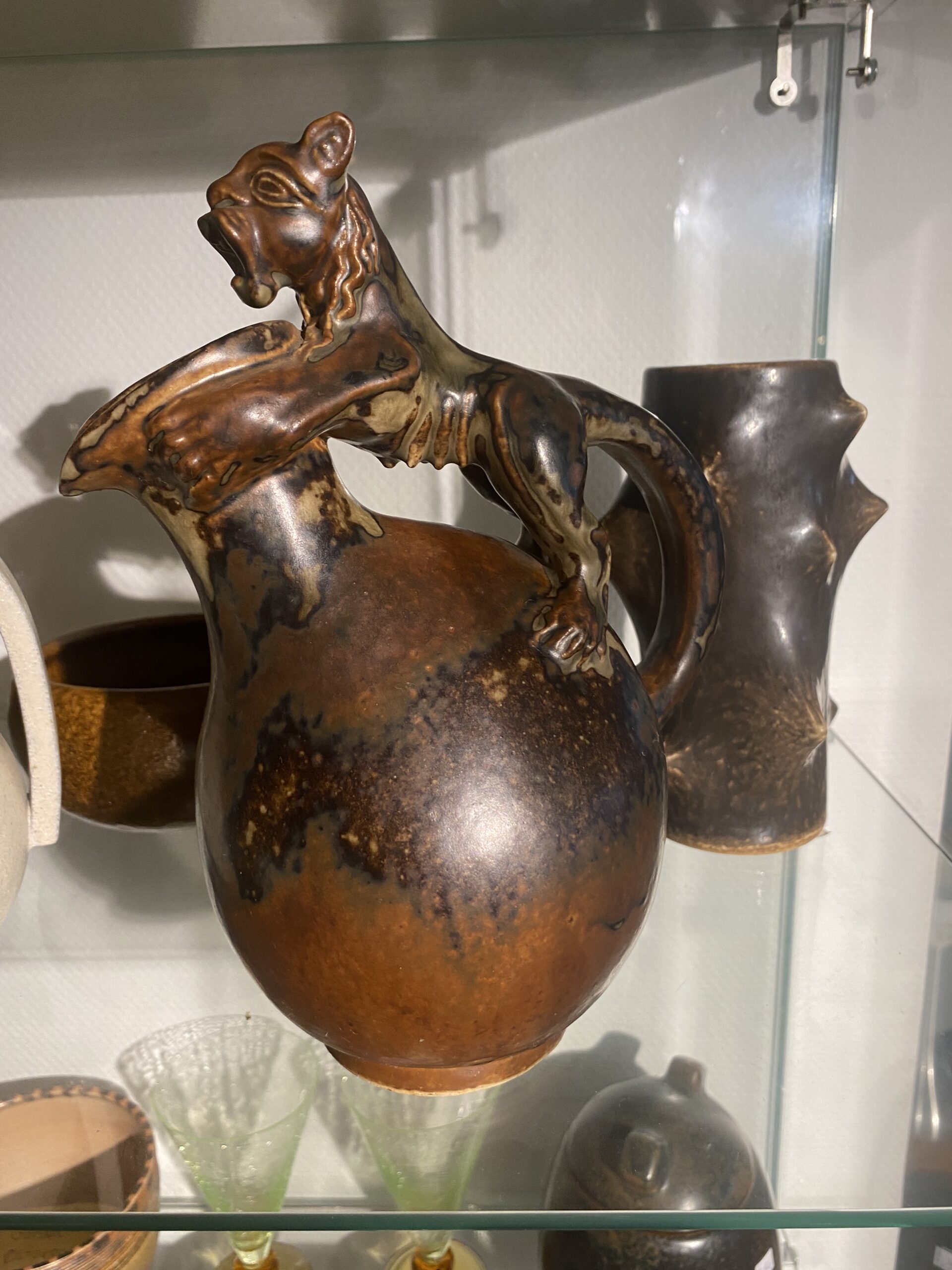 Royal Copenhagen Bode Willumsen kande med kat på toppen. No 20128 Højde 24 cm God stand Pris på vej