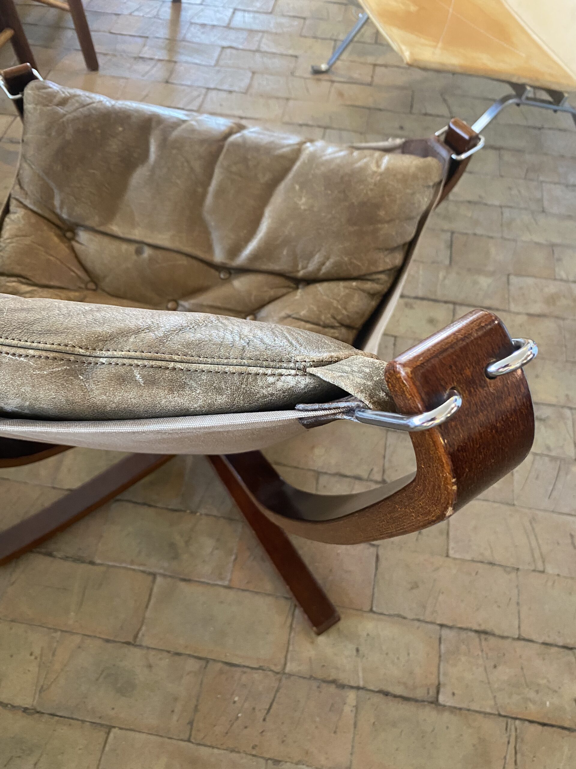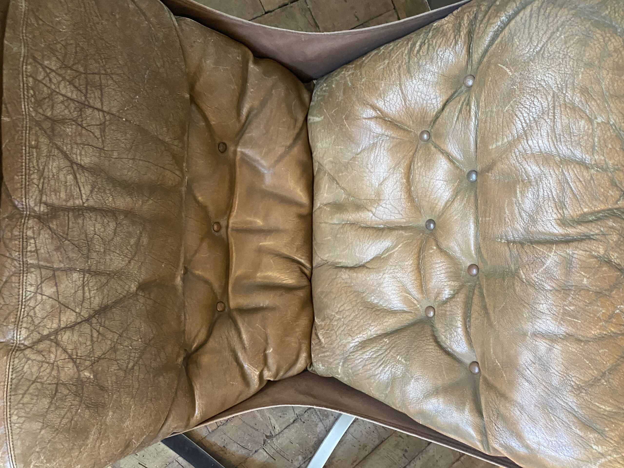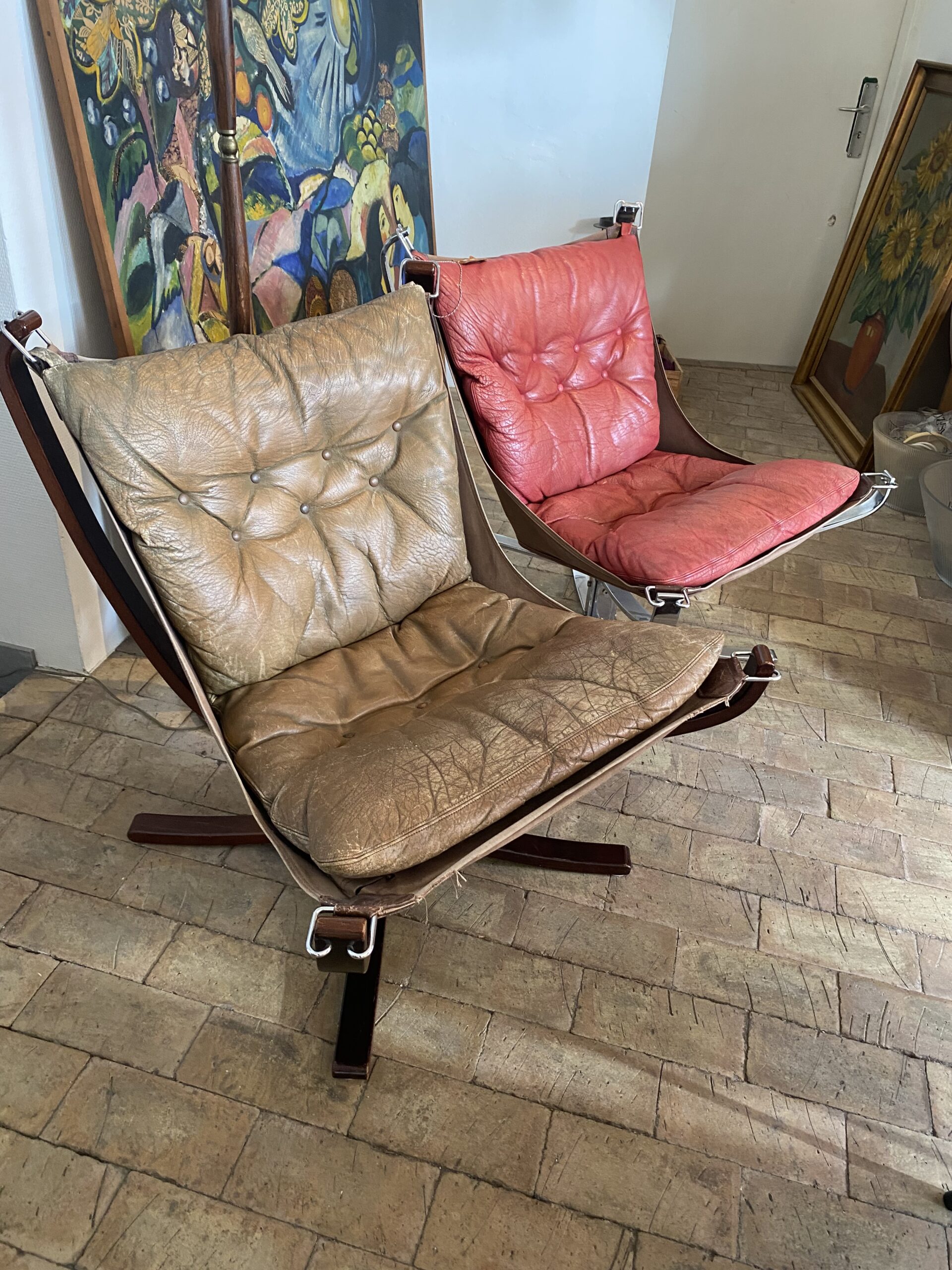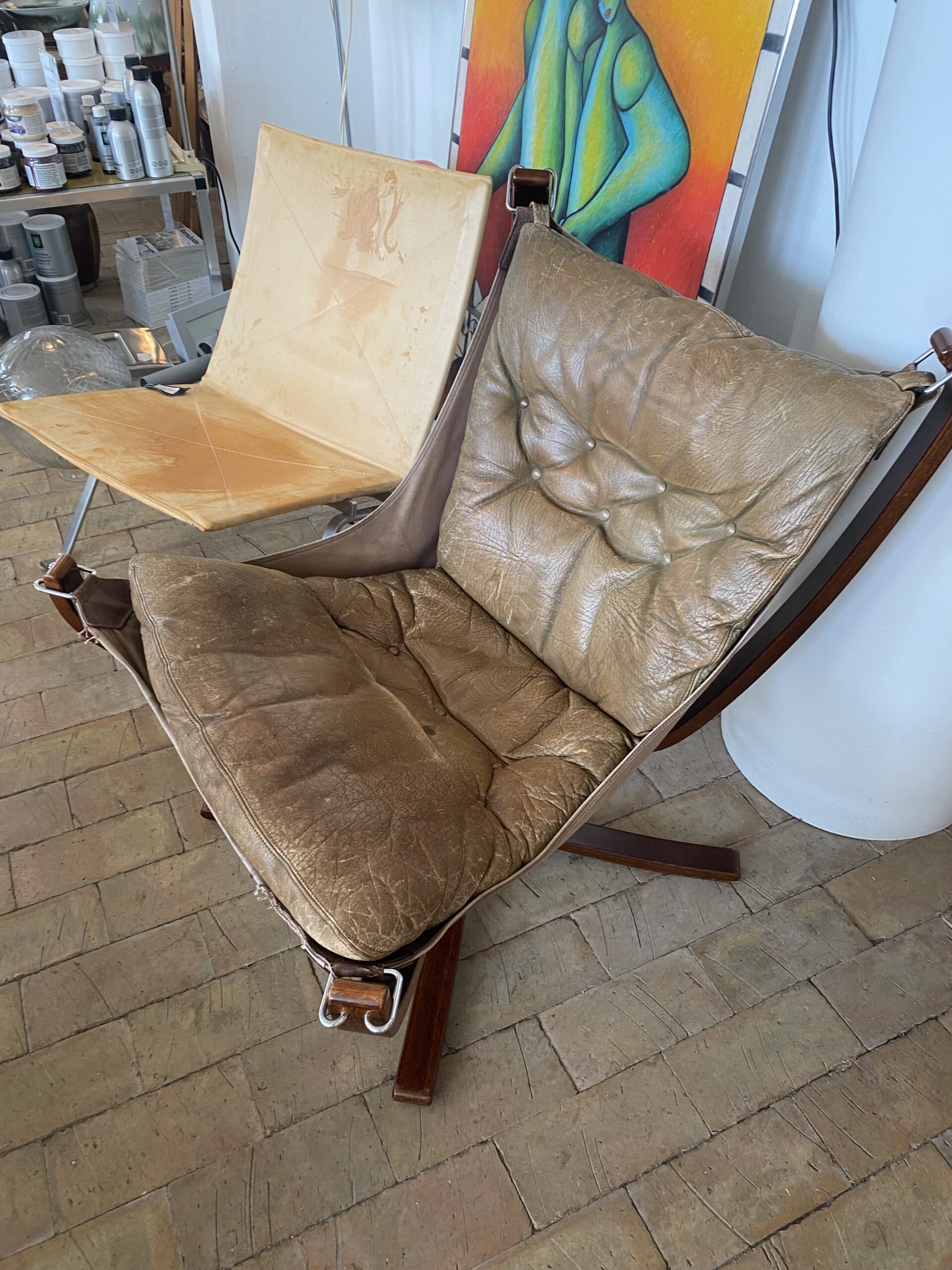 Falcon stole, stel i bejset træ, polstret i okselæder.