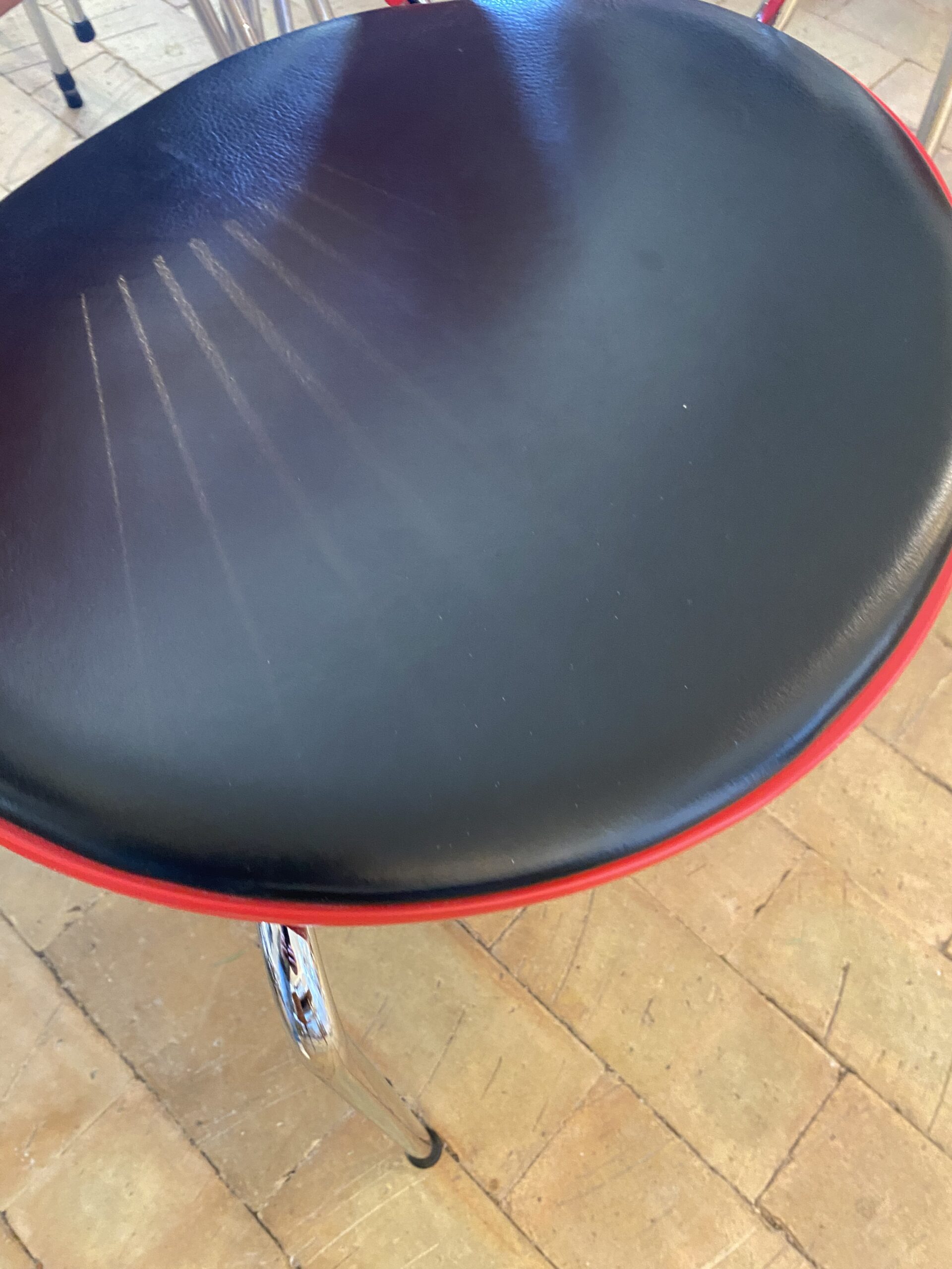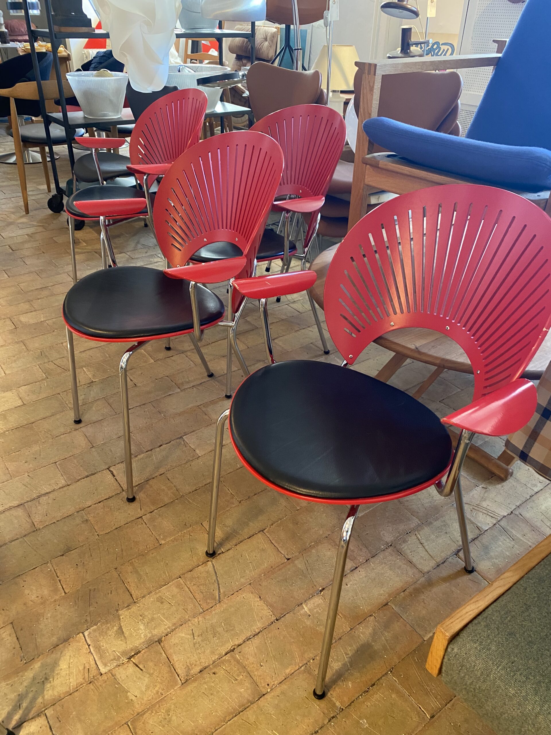 Nanna Ditzel stole med armlæn, rødlig lakering, læder hynde fastmonteret. Sælges samlet 10.000kr for 4 stk.