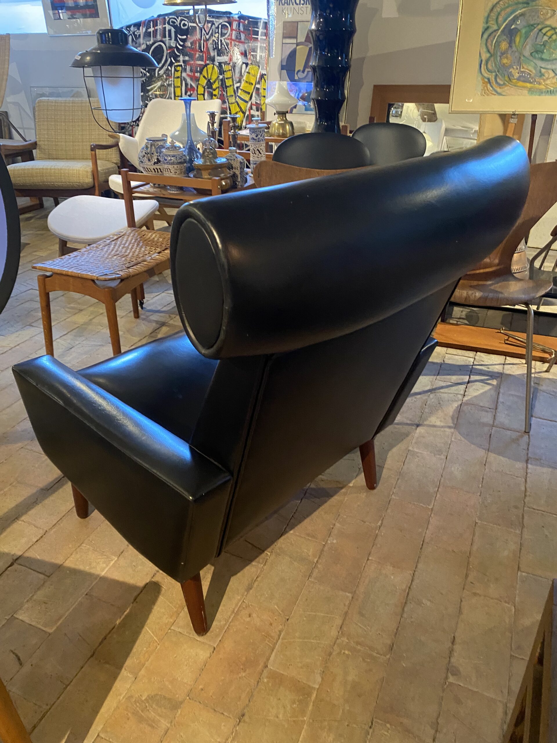 Retro stol fra 1960 erne. Polstret i sort nappa.